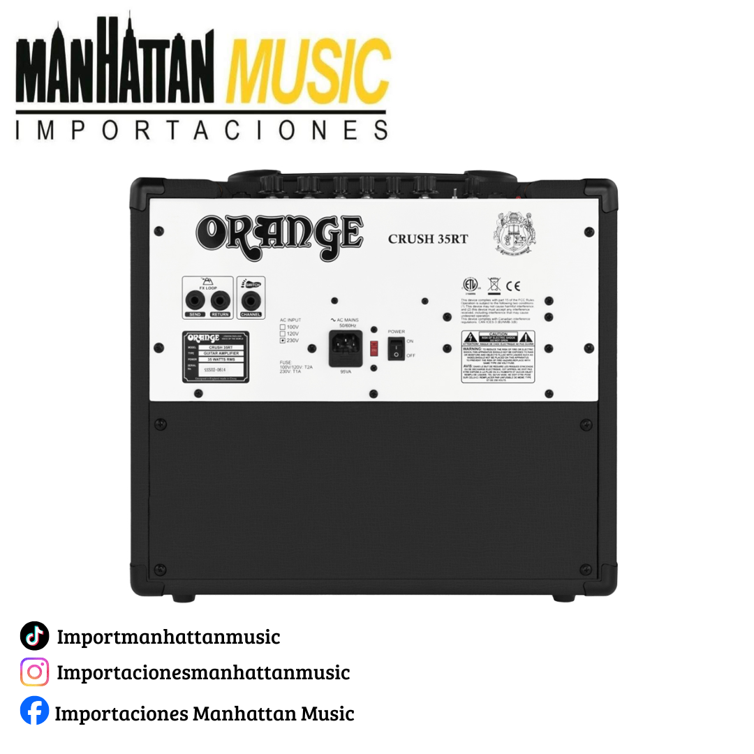 El Orange Crush 35RT es un amplificador de guitarra a transistores que combina potencia, carácter y versatilidad en un formato robusto y confiable. Con 35 watts de salida y el inconfundible tono Orange, ofrece un rendimiento ideal para ensayos, estudio y práctica avanzada. Incorpora dos canales para sonidos limpios y saturados, reverberación integrada y una respuesta dinámica que mantiene la esencia clásica de la marca, todo en un diseño sólido y portátil.